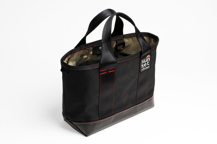 sunsetclimax Gear Bagと同素材のしなやかな持ち手。本橋テープのオリジナルテープ。
