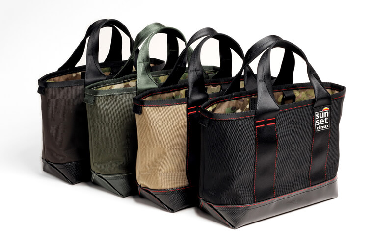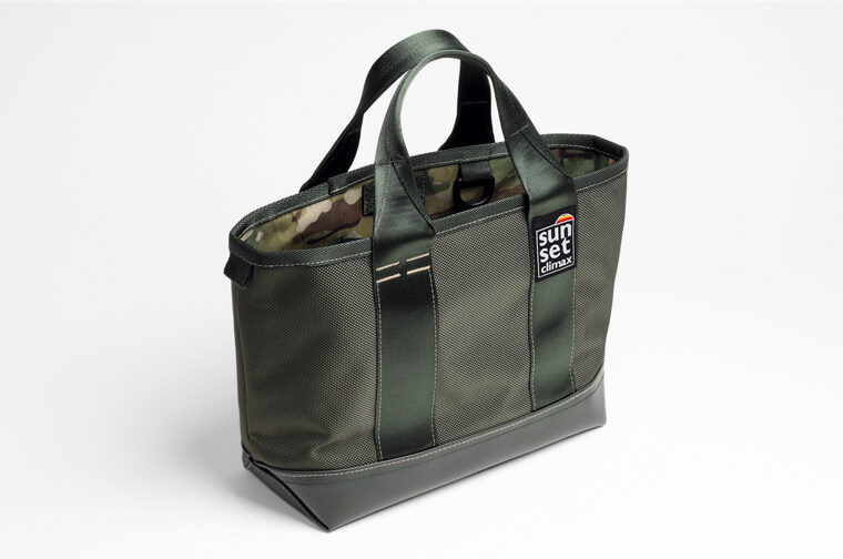 圧倒的な人気を誇るsunsetclimax Gear Bag。その開発から縫製に至るまで全てに関わる、東京で代々続く縫製職人の4代目。この長い歴史の中に新たに加えられた、アウトドアバッグ職人としての実績。その証としてTote Bagにも押される「株式会社茂木商工の青燕印」