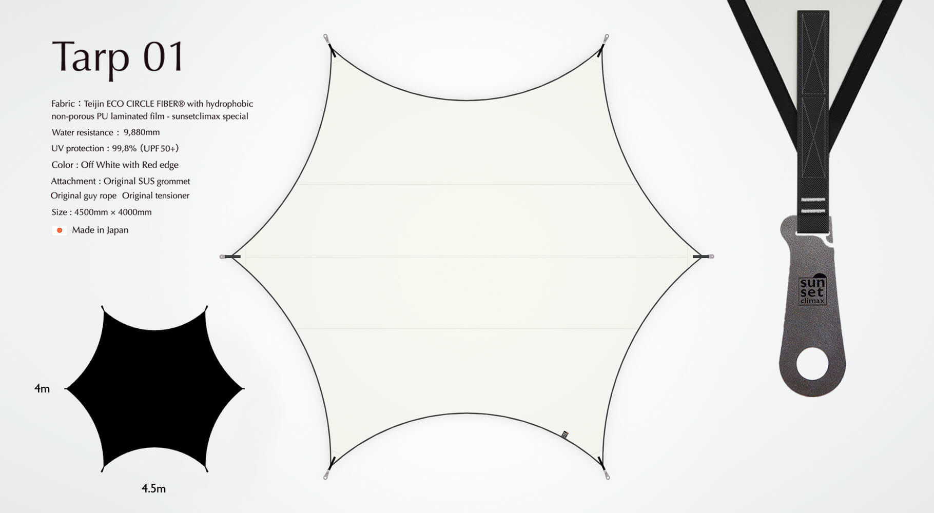 Hexa tarp designed for 3-4 people, flagship model Tarp 01 in black from sunsetclimax brand.