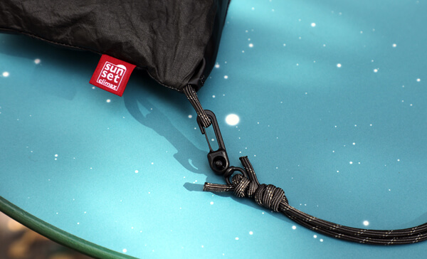 YKK製の樹脂製ナスカンを採用することで、紐と本体の接続があらゆる方向に柔軟に対応。ストレスフリーで、使い心地も抜群。